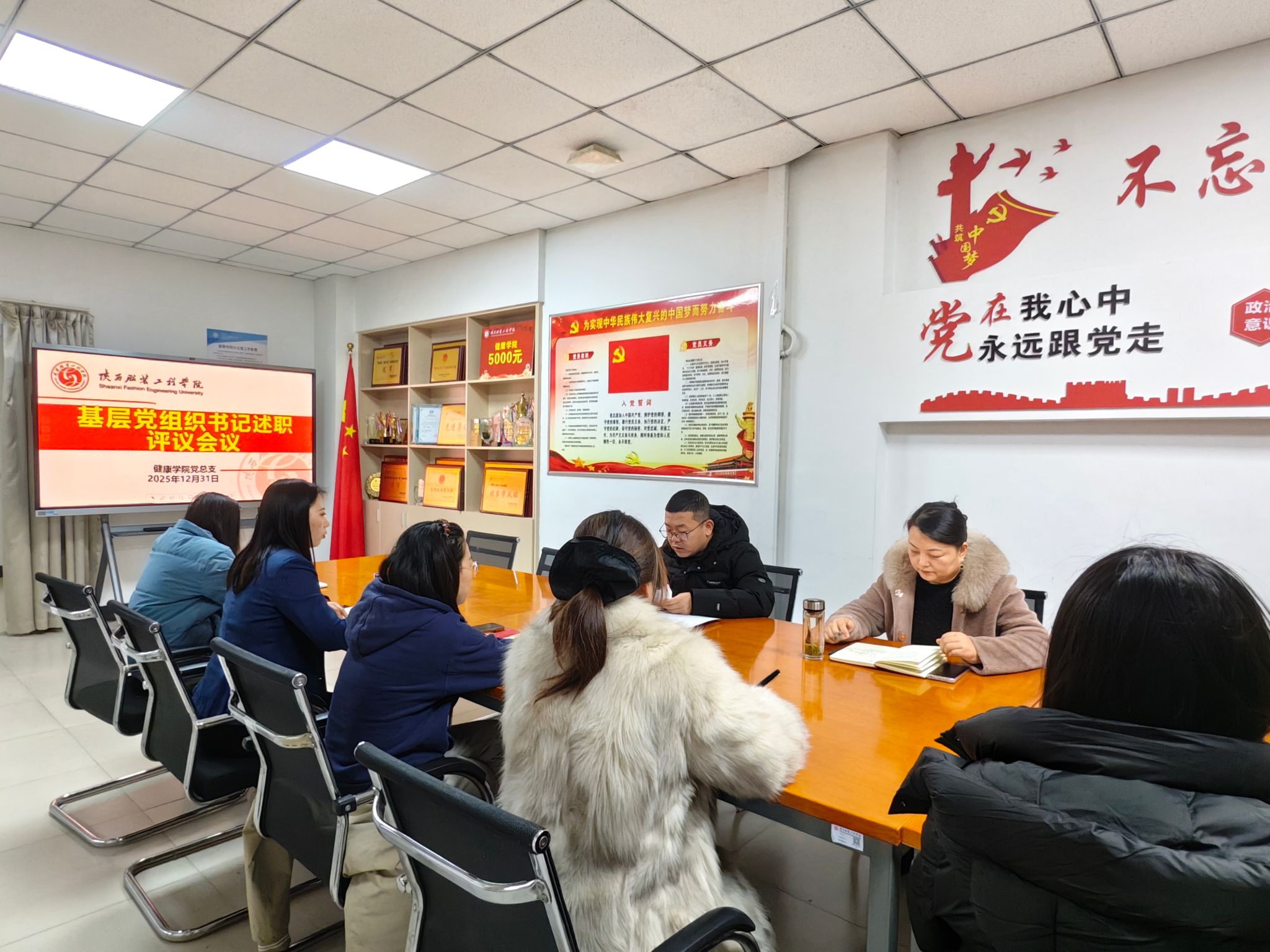 为深入学习贯彻习近平新时代中国特色社会主义思想,全面落实新时代党的建设总要求,严格按照学校党委关于 2025 年度基层党组织书记述职评议考核工作的部署安排,12 月 31 日上午,健康学院在 B201 党员活动室召开基层党组织书记述职评议会议。学院党总支书记罗杜娟、党总支副书记耿鹏飞、教工党支部书记房媛、学生党支部书记张涵及总支委员、支部委员参加会议。党总支副书记耿鹏飞主持会议。会议伊始,耿鹏飞副书记详细解读了《中共陕西服装工程学院委员会关于做好 ...