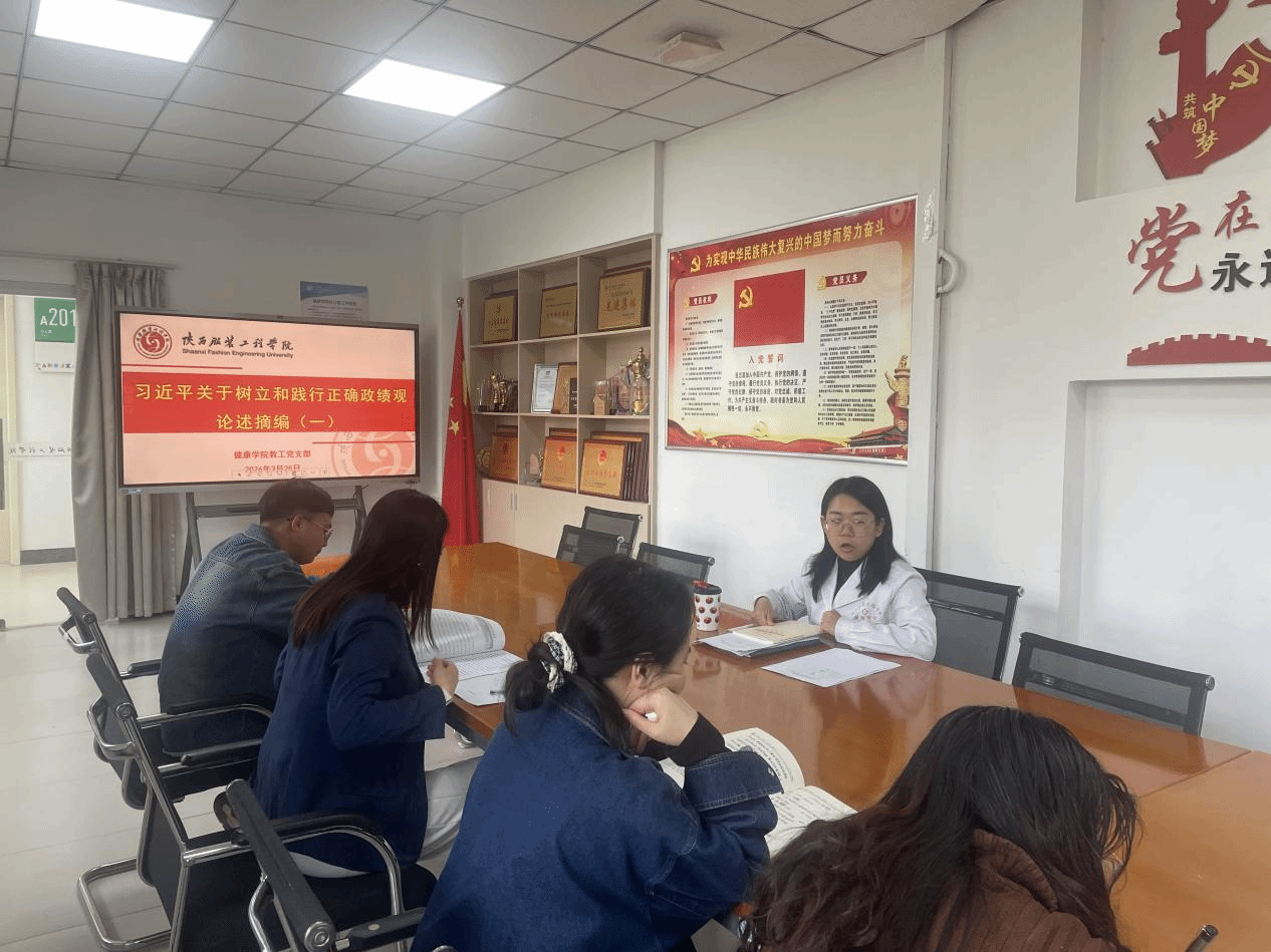为深入学习贯彻习近平总书记关于树立和践行正确政绩观的重要论述,强化党员宗旨意识与责任担当,3 月 25 日下午,健康学院教工党支部在党员活动室开展 “三会一课” 集中学习会,专题学习《习近平关于树立和践行正确政绩观论述摘编》。会议由支部书记房媛主持,全体教师党员参加学习。会上,房媛同志带领全体党员原原本本研读第一部分内容,紧扣政绩观是根本性问题这一核心定位,重点解读四方面要义:一是深刻认识政绩观关乎立党为公、...