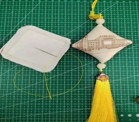 当传统非遗技艺遇上现代AI技术,当中药文化的厚重底蕴碰撞校园标识的青春活力,会迸发怎样的创意火花?锦艺传香实践队团队成员在朱文静老师的带领下,奇思妙想将中药元素与校园印记相结合制作成一款别出心裁的香囊袋。
