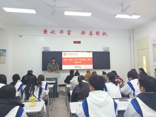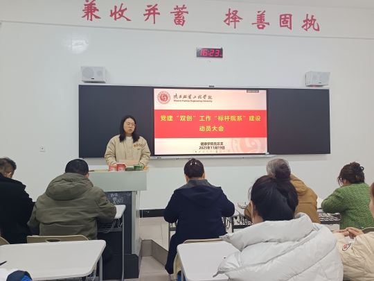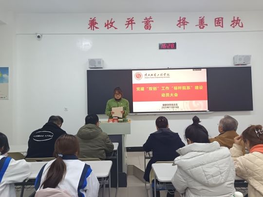 党总支书记罗杜娟作动员讲话,系统阐释了创建工作的重大意义、目标任务与保障机制。她指出,创建“标杆院系”是强化党的全面领导、破解党建业务“两张皮”难题、凝练健康专业特色、凝聚全院智慧力量的系统工程,必须从学院发展全局高度深刻把握其战略意义。她强调,要牢牢把握“党建引领、深度融合”主线,紧紧抓住“提升组织力”重点,全力打造“健康党建”品牌,始终坚持“全面创优”标准,高质量推进理论武装、组织建设、融合发展与品牌凝练四大任务。为确保创建实效,她要求加强组织领导、压实责任链条,推动全员参与、强化协同联动,并落实政策经费保障、健全督导评估机制,力戒形式主义,确保创建工作与学院中心工作同频共振、互促共进。
