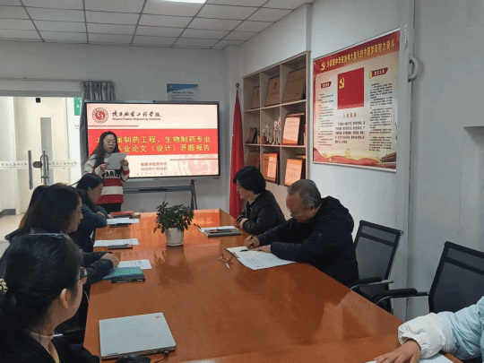 根据学校《关于启动2026届毕业论文(设计)工作的通知》(陕服教函发〔2025〕158号)安排,健康学院药学系于2025年11月28日组织召开了2026届制药工程与生物制药专业毕业论文(设计)开题答辩会。答辩采用线上线下相结合的方式进行,由霍科科教授、王孟副教授、林联君副教授、董林娟副教授、房媛副教授组成答辩专家组,朱文静老师担任主持,全体毕业生参与答辩。