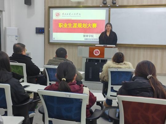为深入推进学院就业指导工作,引导学生树立科学的职业发展观,提前规划大学生涯与职业路径,12月18日,健康学院在B206教室成功举办职业生涯规划大赛。学院党总支副书记、学工办主任耿鹏飞,学生党支部书记、辅导员张涵、薛垚三位老师担任评委,众多学子到场观摩,共同见证这场充满青春志向与职业思考的精彩赛事。